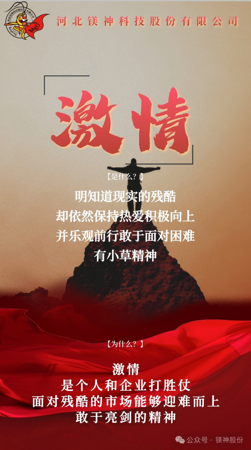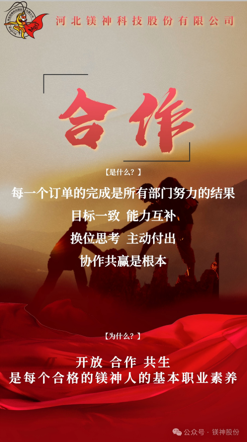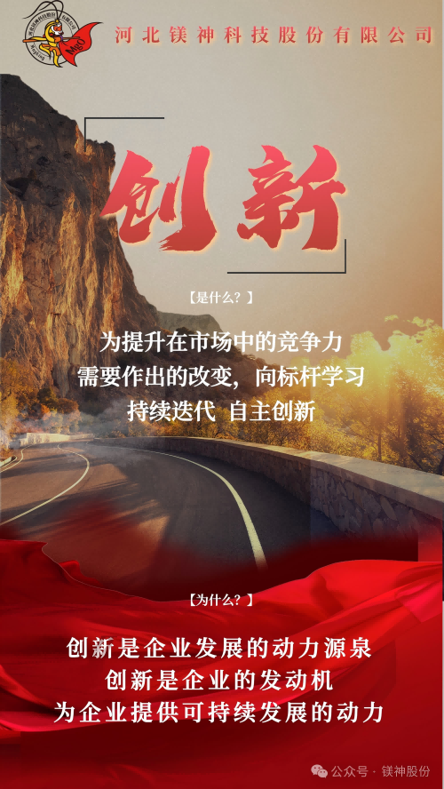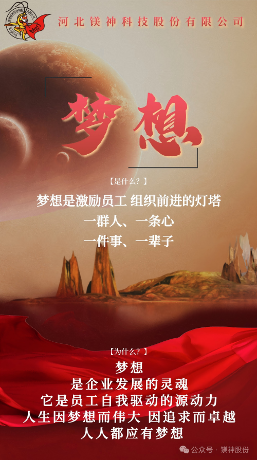 從太行山麓到走向世界舞臺(tái)的鎂質(zhì)新材料領(lǐng)航者,鎂神科技以文化力量開啟新征程。近期,經(jīng)過全體鎂神人的共創(chuàng),承載著鎂神人精神基因的企業(yè)文化2.0升級(jí)版正式發(fā)布,同時(shí)公眾號(hào)將會(huì)開展“鎂神人企業(yè)文化故事”發(fā)布活動(dòng),它是指引鎂神人行動(dòng)的燈塔,是我們凝聚團(tuán)隊(duì)力量,激發(fā)創(chuàng)新活力,助力企業(yè)騰飛的重要舉措;是我們傳承精神基因,引領(lǐng)行業(yè)潮流,邁向世界舞臺(tái)的內(nèi)生動(dòng)力,是我們對(duì)“創(chuàng)建百年鎂神平臺(tái)”的堅(jiān)定信念與承諾。