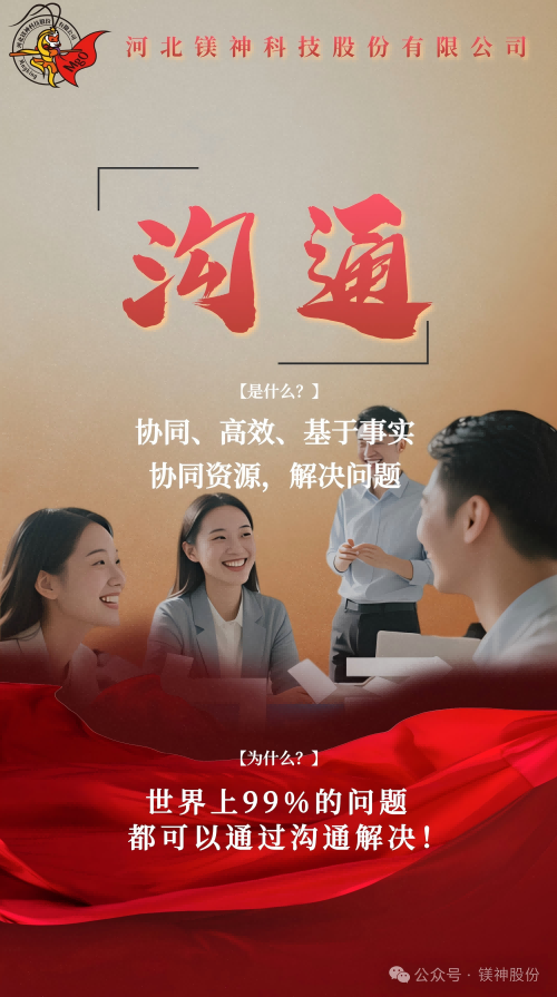 溝通,是實(shí)現(xiàn)鎂神組織協(xié)同、高效的工作方法;溝通是解決問題的良藥;世界上99%的問題都可以通過溝通解決!