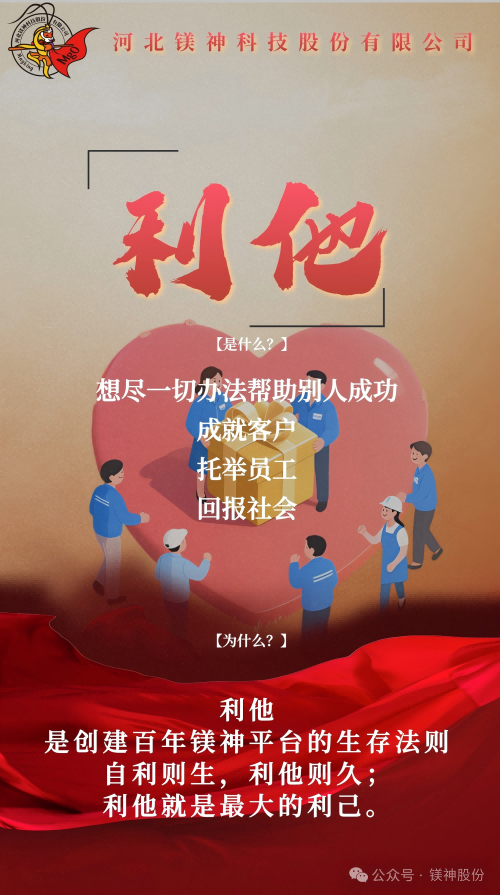 利他,是創(chuàng)建百年鎂神平臺(tái)的生存法則。自利則生,利他則久;利他就是最大的利己。