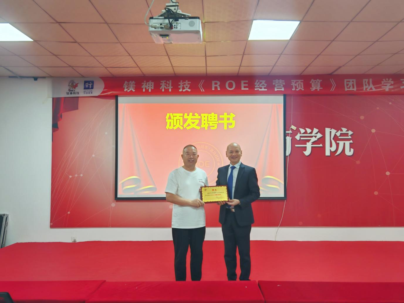 本次培訓(xùn)特邀企業(yè)經(jīng)營預(yù)算領(lǐng)域?qū)崙?zhàn)專家付小平老師擔(dān)任主講,付老師擁有十余年大型企業(yè)預(yù)算體系搭建經(jīng)驗(yàn),更是ROE預(yù)算系統(tǒng)的創(chuàng)始人。他深耕企業(yè)實(shí)踐、扎根一線經(jīng)營,讓其課程兼具理論高度與實(shí)踐溫度,憑借“復(fù)雜理論通俗化、實(shí)操方法工具化”的授課風(fēng)格,付老師的課程在業(yè)界廣受好評。董事長兼總裁孫文為付老師頒發(fā)“ROE預(yù)算總教練”聘書。