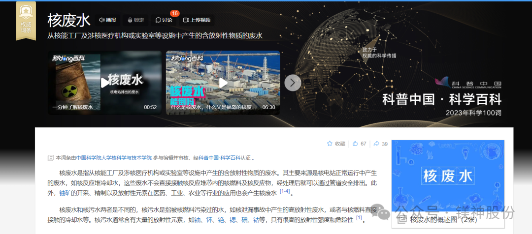核廢水和核污水兩者是不同的,核污水是指被核燃料污染過的水,如核泄漏事故中產生的高放射性廢水,或者與核燃料直接接觸的冷卻水等。核污水通常含有大量的放射性元素,如鈾、钚、銫、鍶、碘、鈷等,具有很高的放射性強度和危險性。