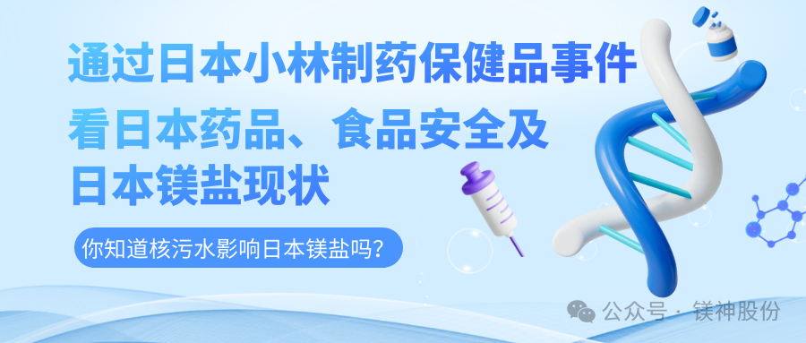 日本小林制藥保健品事件再次將食品、藥品原料的安全性推上風口浪尖。而作為多種藥品原料的日本鎂鹽,已成隱患來源。長久以來,海水法生產鎂鹽因其成本低廉、資源豐富被廣泛采用。然而,自日本宣布排放核廢水入海后,公眾對于從海水中提取的鎂鹽是否受到放射性物質污染產生了嚴重擔憂。
