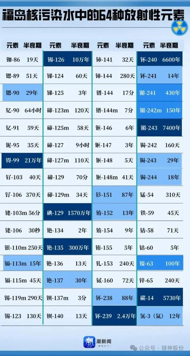 福島核污染水中含有60多種放射性核素,包括氚、碳-14、碘-129等,其中,很多放射性核素尚無有效處理技術,這些放射性核素對海洋生態和人類健康具有極大的潛在威脅。