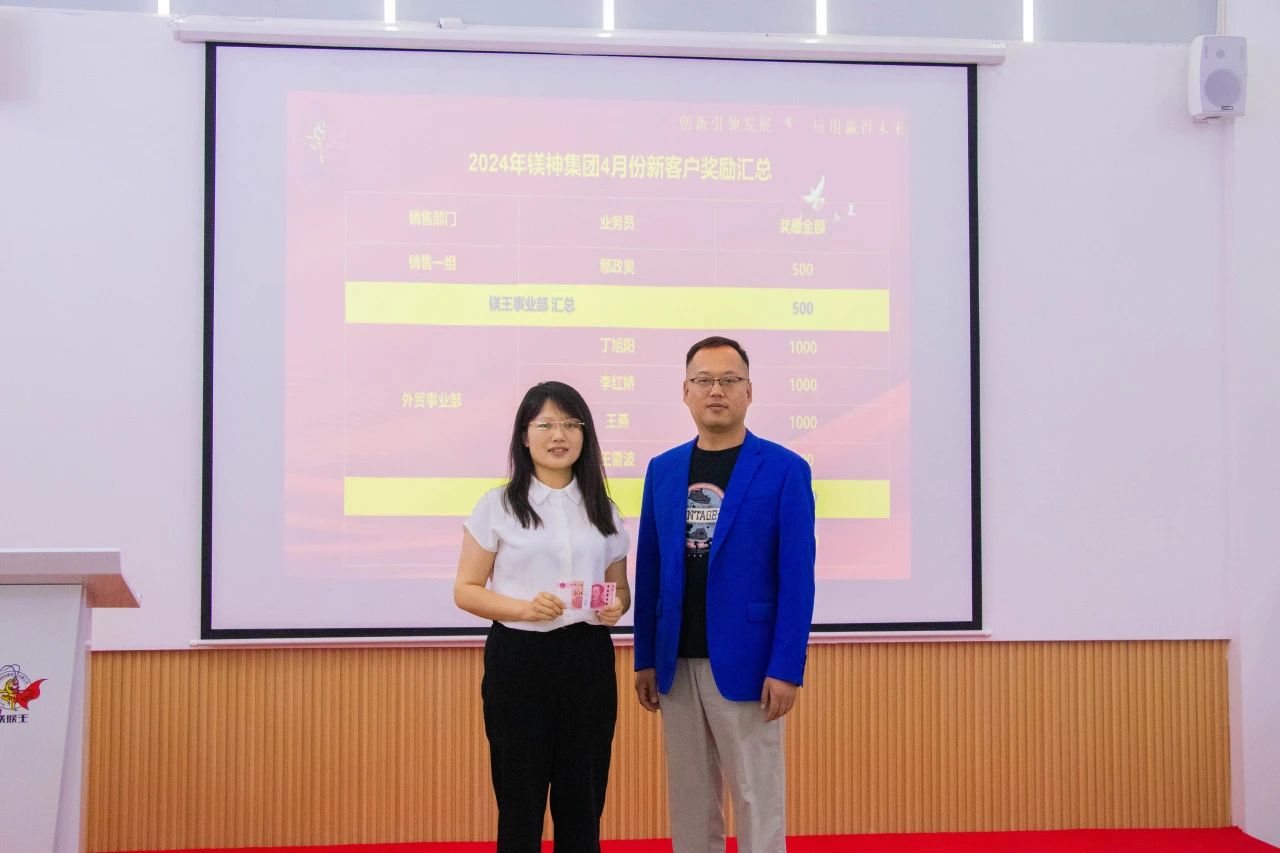 近日,河北鎂神科技股份有限公司迎來了新的業(yè)務突破,公司頒發(fā)4月份新客戶獎勵,以表彰和獎勵那些為公司帶來新增長點的銷售團隊和個人。