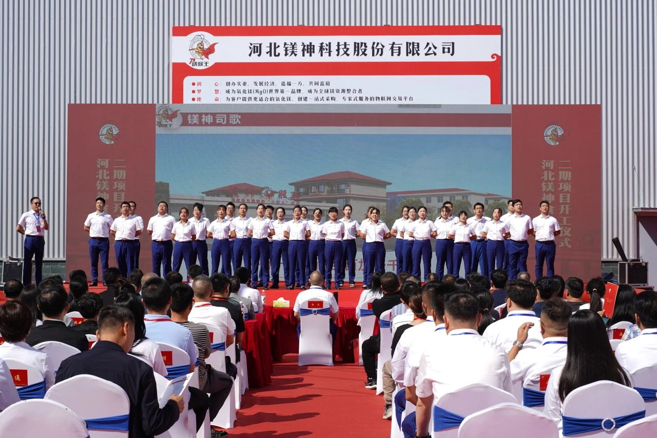 開(kāi)工儀式:揚(yáng)帆再起,開(kāi)啟新篇章開(kāi)工儀式中,鎂神科技的員工們帶來(lái)了精彩紛呈的表演,以飽滿的熱情和昂揚(yáng)的精神展示了公司團(tuán)隊(duì)的活力與凝聚力。緊接著,鼓聲震天的“盛世鼓韻”表演將現(xiàn)場(chǎng)氣氛推向高潮,象征著鎂神科技蒸蒸日上的發(fā)展勢(shì)頭。伴隨著鏗鏘有力的鼓聲,整個(gè)會(huì)場(chǎng)充滿了激動(dòng)與振奮的氛圍。隨后,鎂神科技董事長(zhǎng)孫文先生上臺(tái)致辭,正式開(kāi)啟了食品氧化鎂二期項(xiàng)目的輝煌篇章。