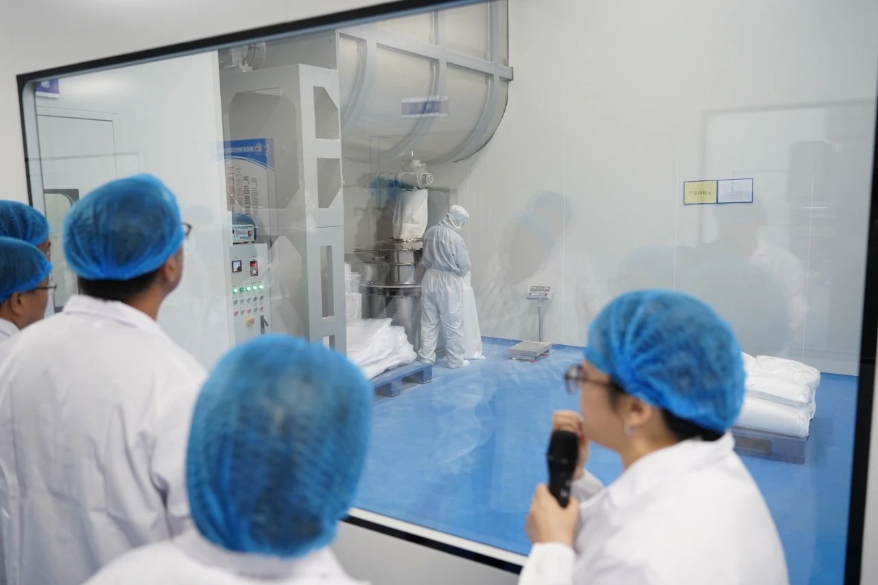 嘉賓們首先來(lái)到鎂神科技食品氧化鎂二期車間,這是此次項(xiàng)目的核心區(qū)域。車間內(nèi)的全自動(dòng)四列雙層電加熱輥道窯生產(chǎn)線,是國(guó)內(nèi)首條結(jié)合動(dòng)靜生產(chǎn)的高效生產(chǎn)線,具備精準(zhǔn)的溫控系統(tǒng),溫度誤差控制在±2℃以內(nèi),有效保證了產(chǎn)品的高穩(wěn)定性和潔凈度。現(xiàn)場(chǎng)技術(shù)人員向嘉賓詳細(xì)介紹了生產(chǎn)線的先進(jìn)工藝和操作流程,展示了鎂神科技在食品級(jí)氧化鎂生產(chǎn)領(lǐng)域的技術(shù)創(chuàng)新與領(lǐng)先優(yōu)勢(shì)。接下來(lái)進(jìn)入潔凈區(qū)后,嘉賓們進(jìn)一步感受到鎂神科技在產(chǎn)品品質(zhì)保障方面的嚴(yán)謹(jǐn)態(tài)度。食品二期項(xiàng)目中面積達(dá)5000平方米的十萬(wàn)級(jí)潔凈區(qū)達(dá)到了國(guó)際食品安全標(biāo)準(zhǔn),嚴(yán)格控制生產(chǎn)環(huán)境中的微生物和異物,確保產(chǎn)品的純凈度。通過(guò)高標(biāo)準(zhǔn)的生產(chǎn)環(huán)境,鎂神科技不僅滿足了國(guó)內(nèi)外客戶對(duì)食品安全的嚴(yán)格要求,還為開(kāi)拓全球市場(chǎng)提供了堅(jiān)實(shí)的質(zhì)量保障。