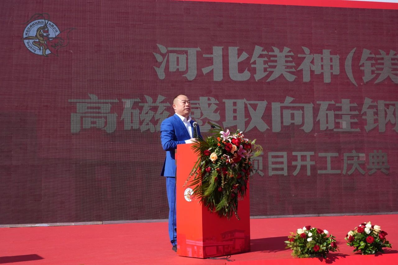 2024年10月19日,河北鎂神科技股份有限公司(以下簡稱“鎂神科技”)在廣宗工廠隆重舉行“河北鎂神(鎂泰)高磁感取向硅鋼氧化鎂項目開工儀式”,并于當天下午舉辦了技術交流會。此次活動匯聚了來自政府、行業協會、科研機構及企業的眾多領導、專家和合作伙伴的熱情參與,共同見證中國硅鋼級氧化鎂歷史上一里程碑時刻。