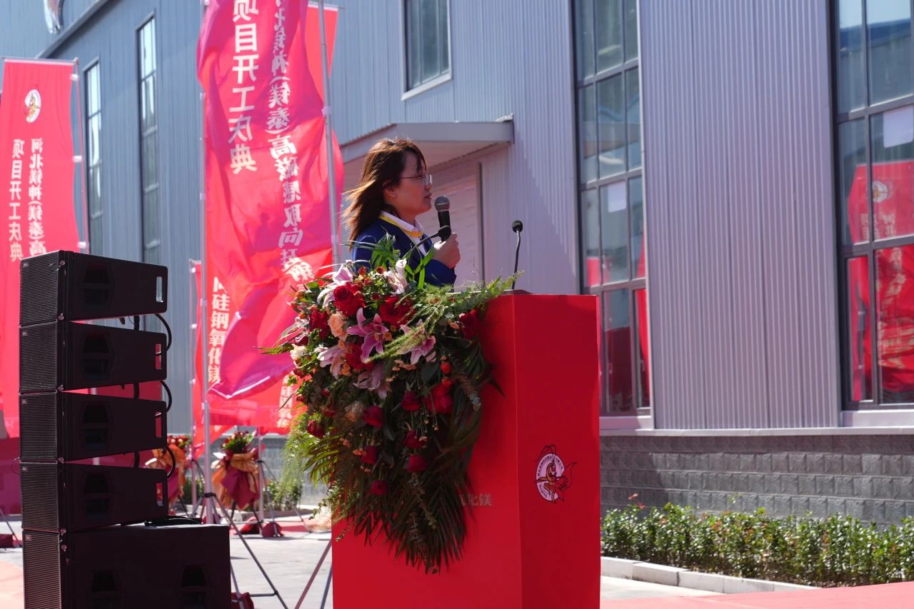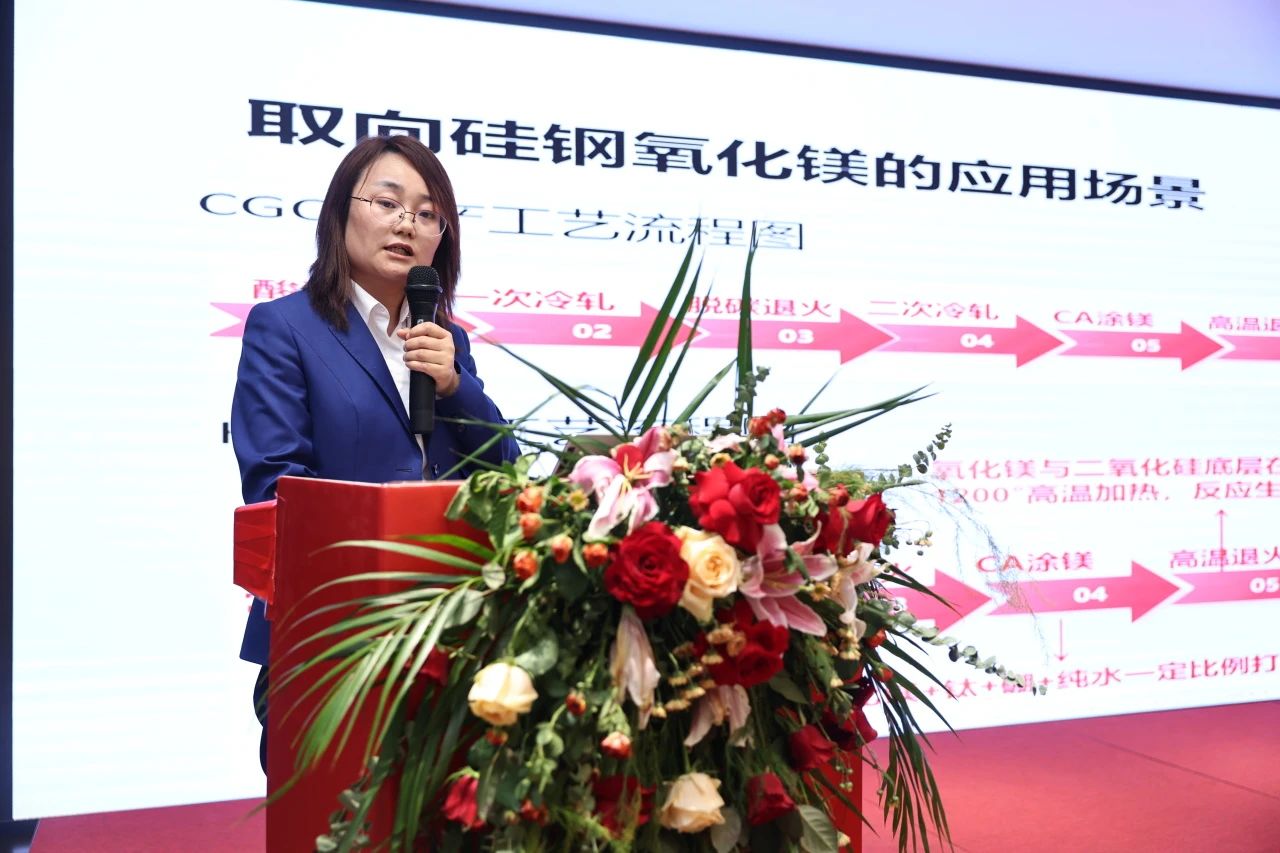 在鎂神科技研發總監白雪梅女士的致辭中,她對鎂神科技多年來在氧化鎂領域的技術積累和創新成就做出進一步回顧,特別是對HIB鋼專用氧化鎂項目做了詳細介紹。她強調,鎂神科技在全球率先建成了雙層六列電加熱輥道窯生產線,通過先進的自動化生產和嚴格的質量控制體系,確保產品的高純度和穩定性。白總監還指出,鎂神科技將繼續致力于技術創新和產品優化,以客戶需求為導向,提供更優質的定制化解決方案,助推取向硅鋼產業高質量發展!