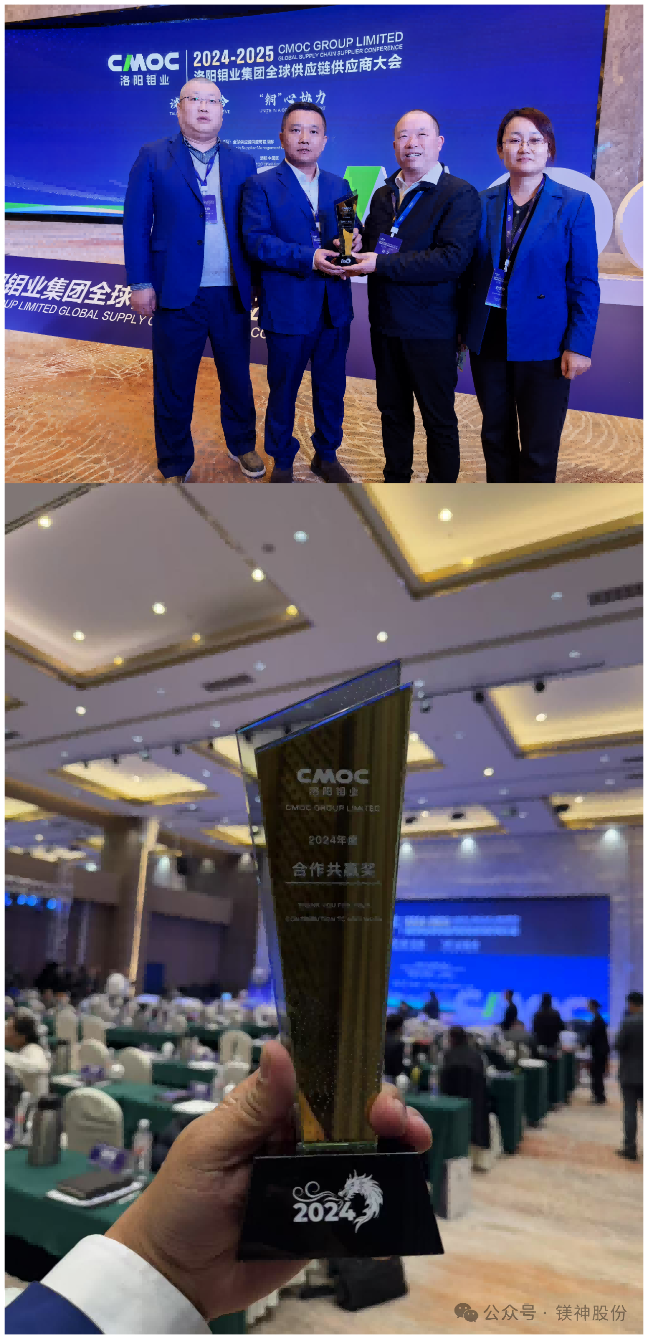 該獎項不僅是對河北鎂神科技股份有限公司過去一年辛勤付出和卓越成就的高度認可,也是對其未來發(fā)展的深切期待。鎂神科技將繼續(xù)秉持合作共贏的理念,與洛鉬集團以及更多合作伙伴攜手共進,共同美好未來!